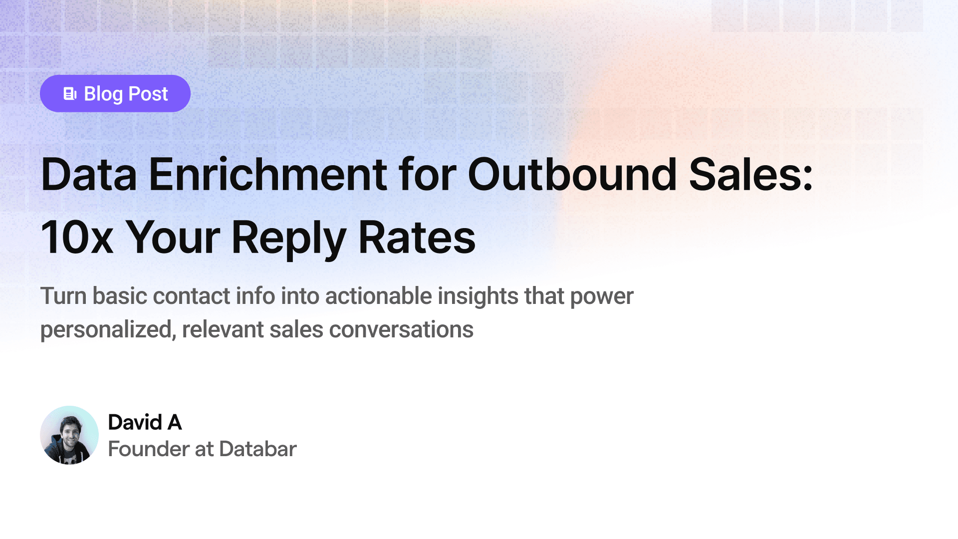 Data enrichment for outbound sales is the process of adding verified contact information, company data, and personalization context to your prospect list before starting outbound campaigns. It turns a basic list of names and companies into profiles your SDRs can use to write specific, relevant messages that get replies.