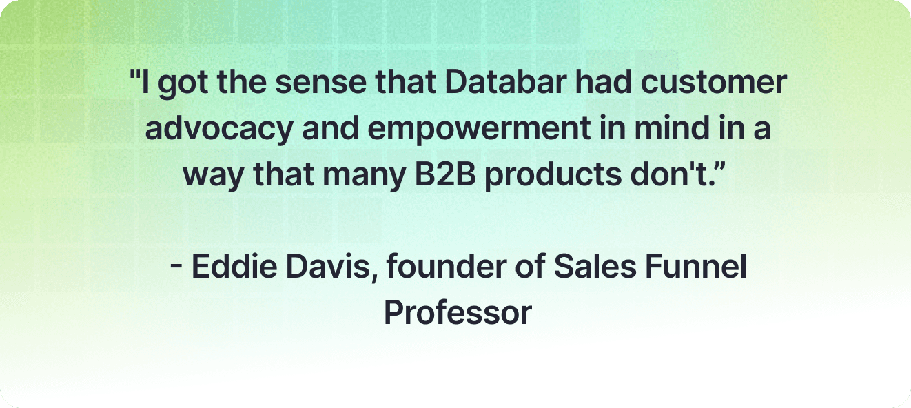 "We see Databar as part of our overall goal of continuing to become more efficient for our clients, which means we can serve more and help them achieve their goals faster. A consolidation of tools is always a welcome addition."