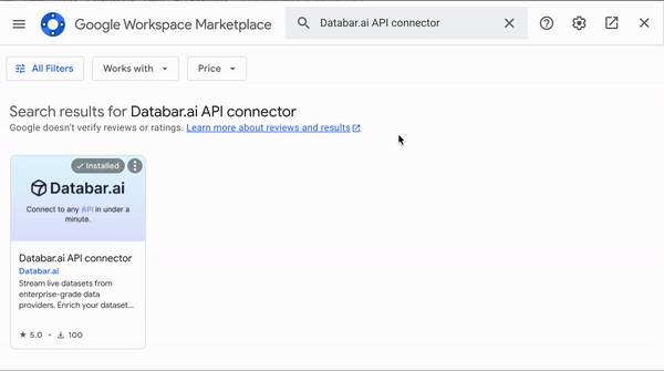 Go to the Google Workplace Marketplace and install the Databar.ai API connector.