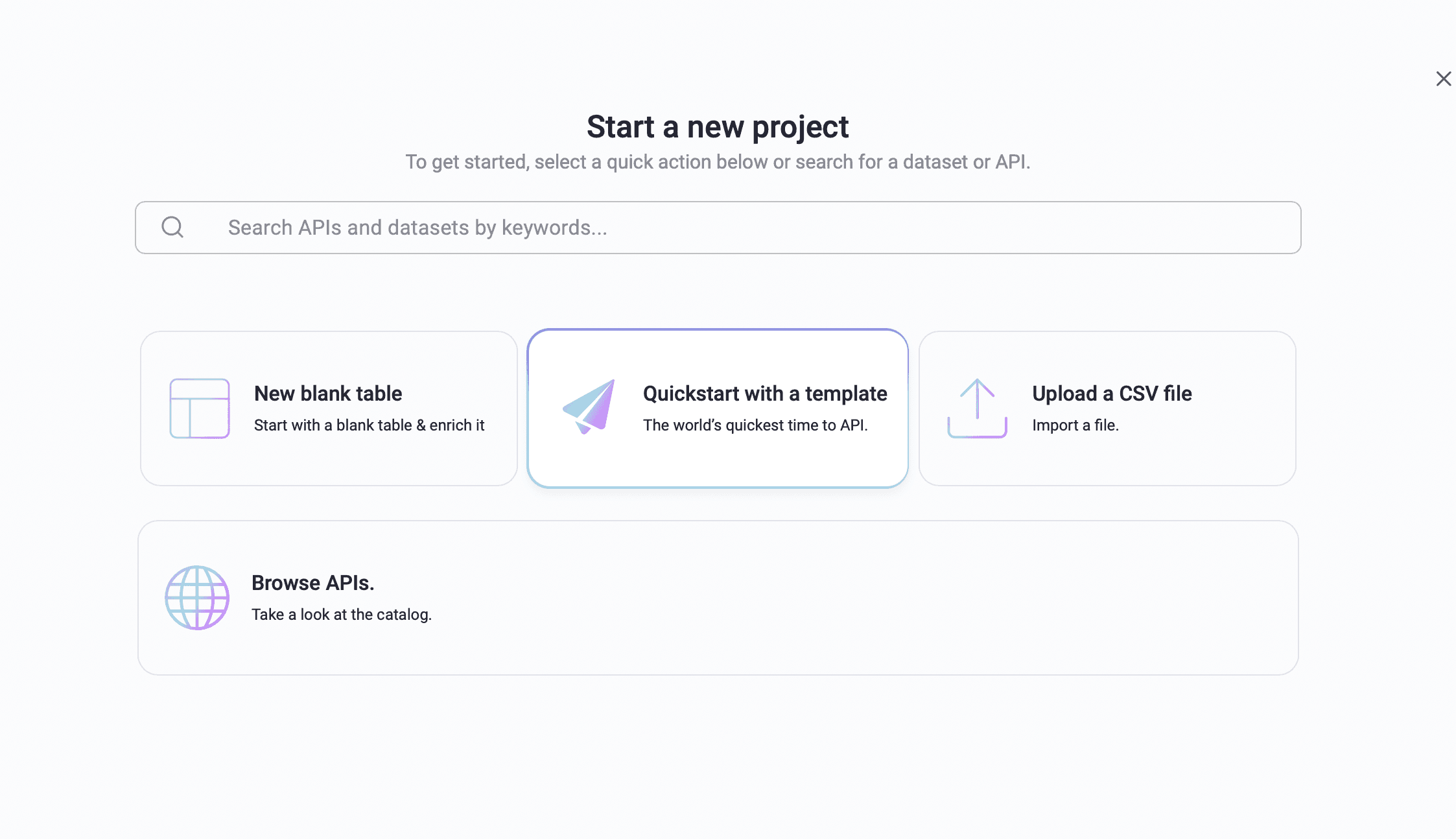 1) When starting a new project, access our available templates and quick start.