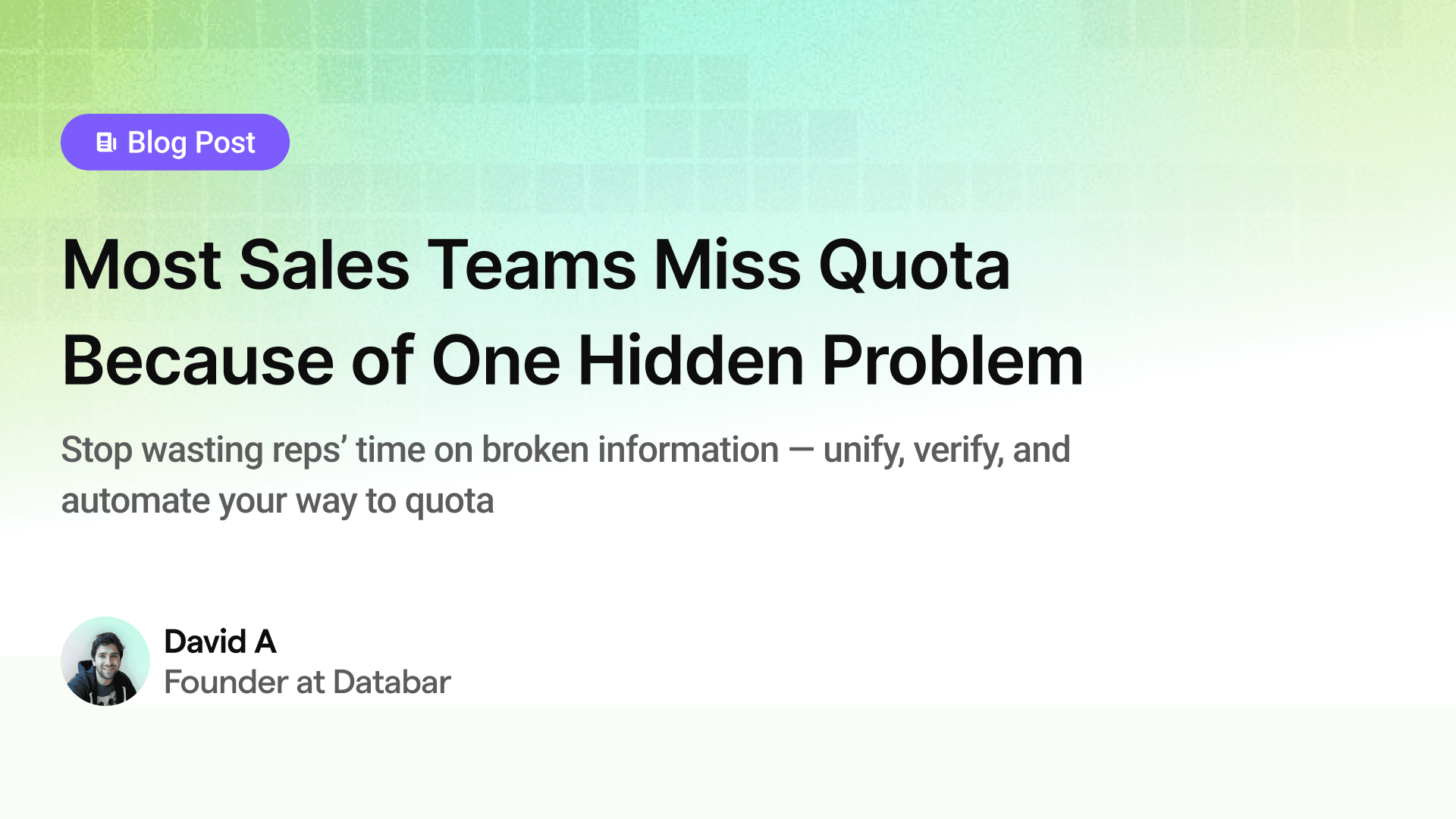 The teams that consistently hit quota aren't necessarily better at selling - they're better at ensuring their sales activities are built on reliable information. While everyone else fights symptoms, top performers solve the underlying data problem that builds the foundation to make everything else work.