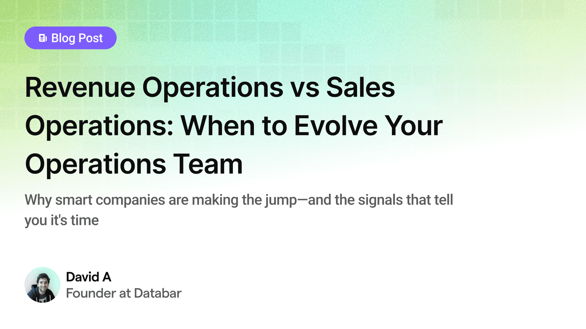 The evolution from sales operations to revenue operations isn't just an organizational change—it's recognizing that modern revenue generation requires coordination across the entire customer journey.