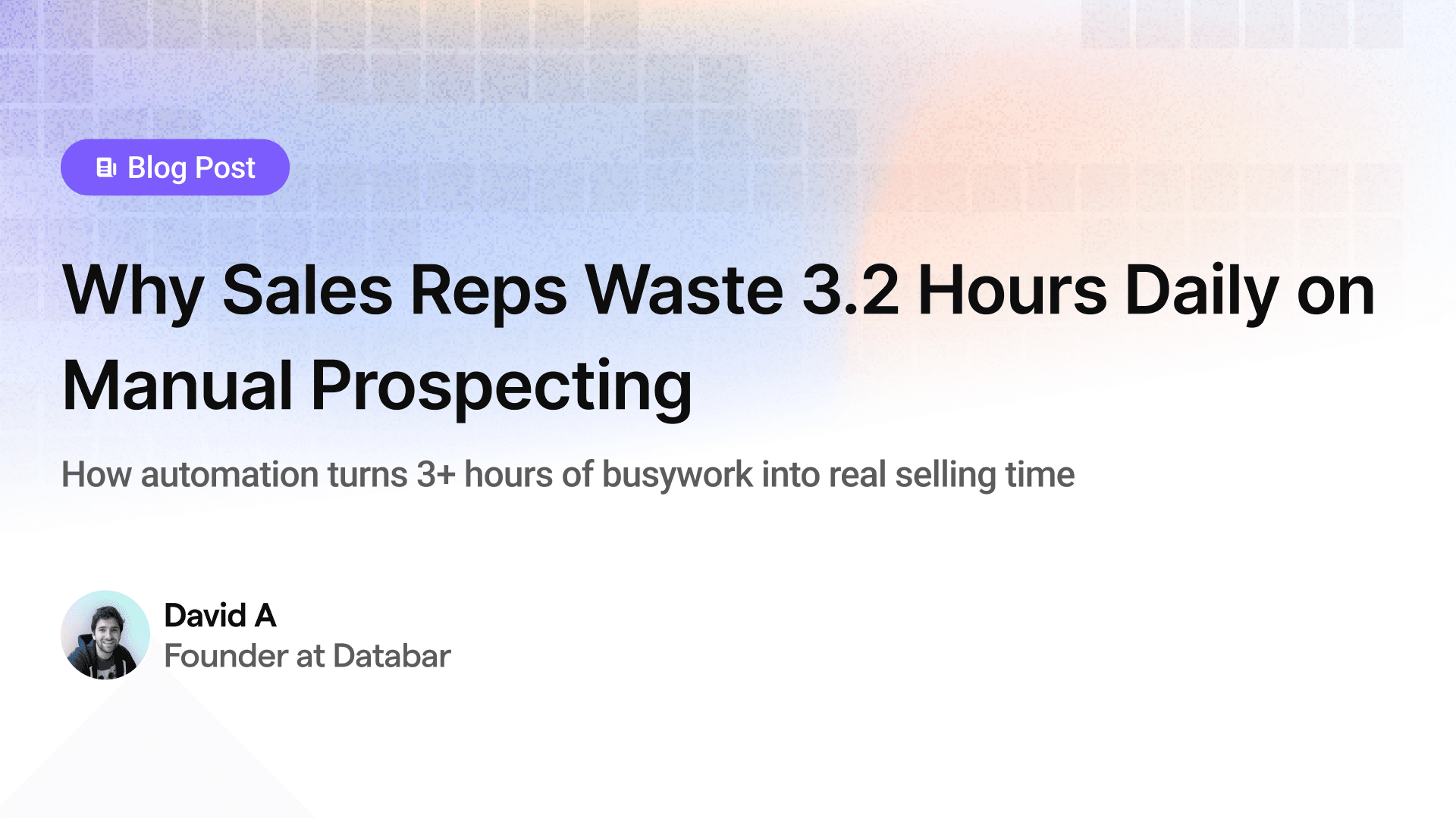Sales productivity expert Marc Wayshak warns that when prospect research "starts resembling an entire thesis paper, you're now crossing over to the world of procrastination." But for many reps, extensive manual research isn't procrastination - it's the only way they know how to gather the information needed for effective outreach.